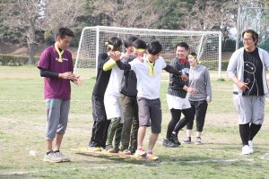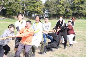 桜舞う中での営業、職人、内勤者全員で体を動かし、チーム対抗で団結力を高め合いました!!