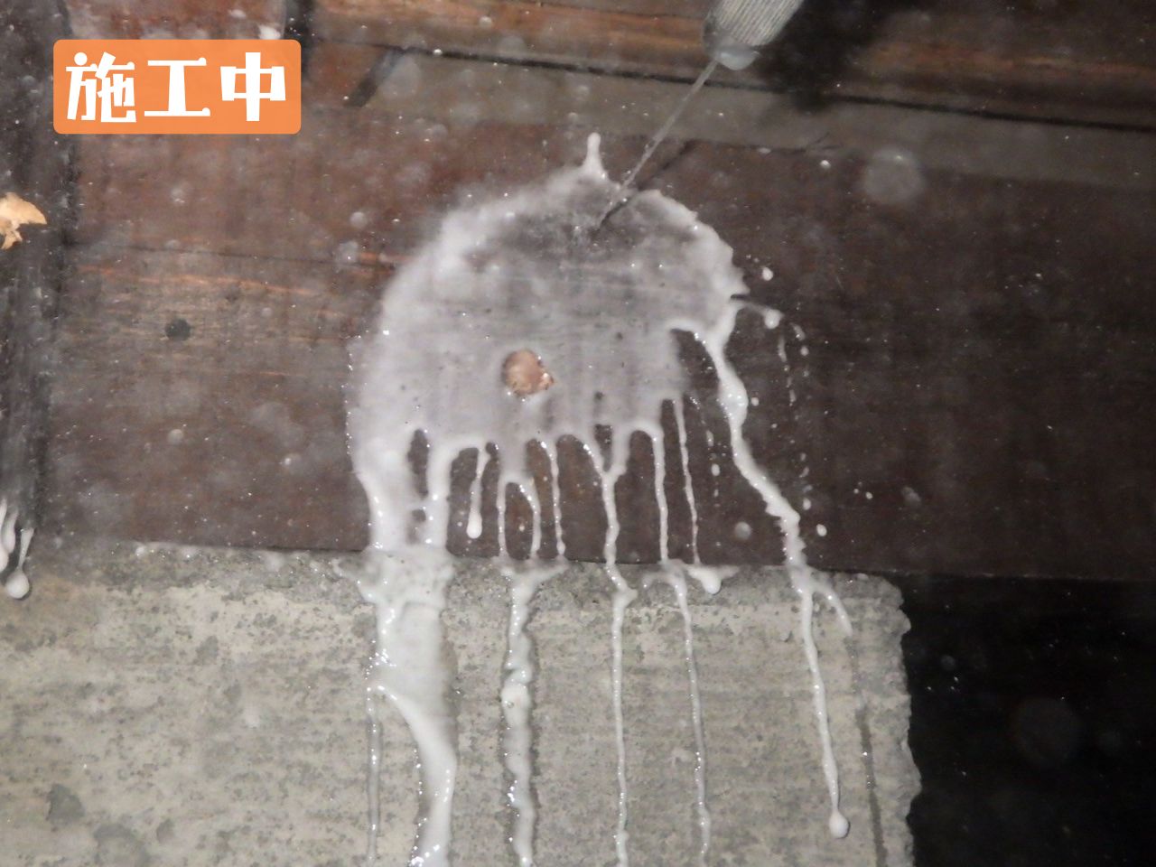 実際の作業としましては、木材にドリルで穴を開けて薬剤を注入することと、木材の表面や基礎部分、土壌への薬剤の散布が主なものになります。