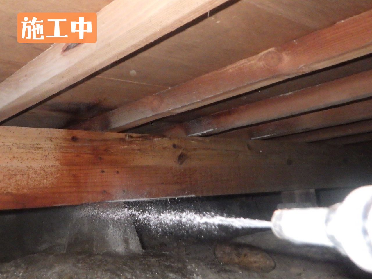 住宅の床下の防蟻工事を実施いたしました。木材を食い荒らすシロアリは、建物の耐久性や耐震性を低下させるため注意が必要です。
